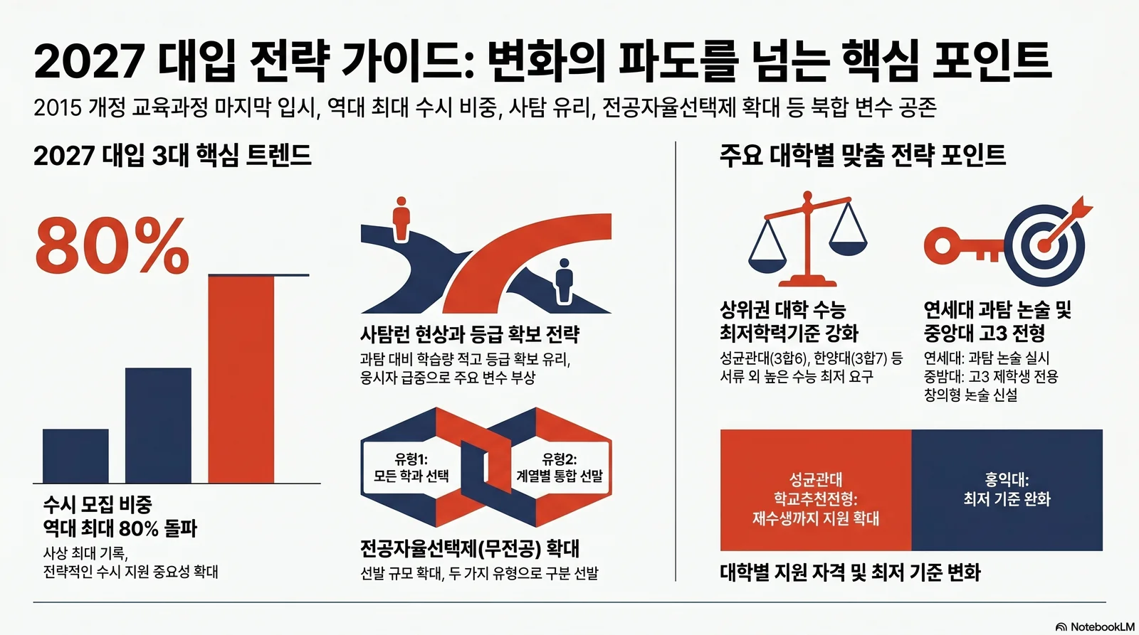 2027 대입, 수시 80% 돌파 — 최저·면접·사탐런이 만드는 변수 총정리